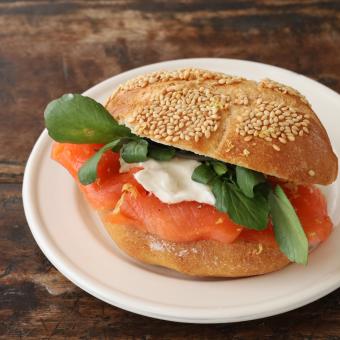 オーストリア生まれのカイザーゼンメルは、歯切れがよくサンドイッチにピッタリです。ホースラディッシュを添えるのが現地流。サーモンによく合います。